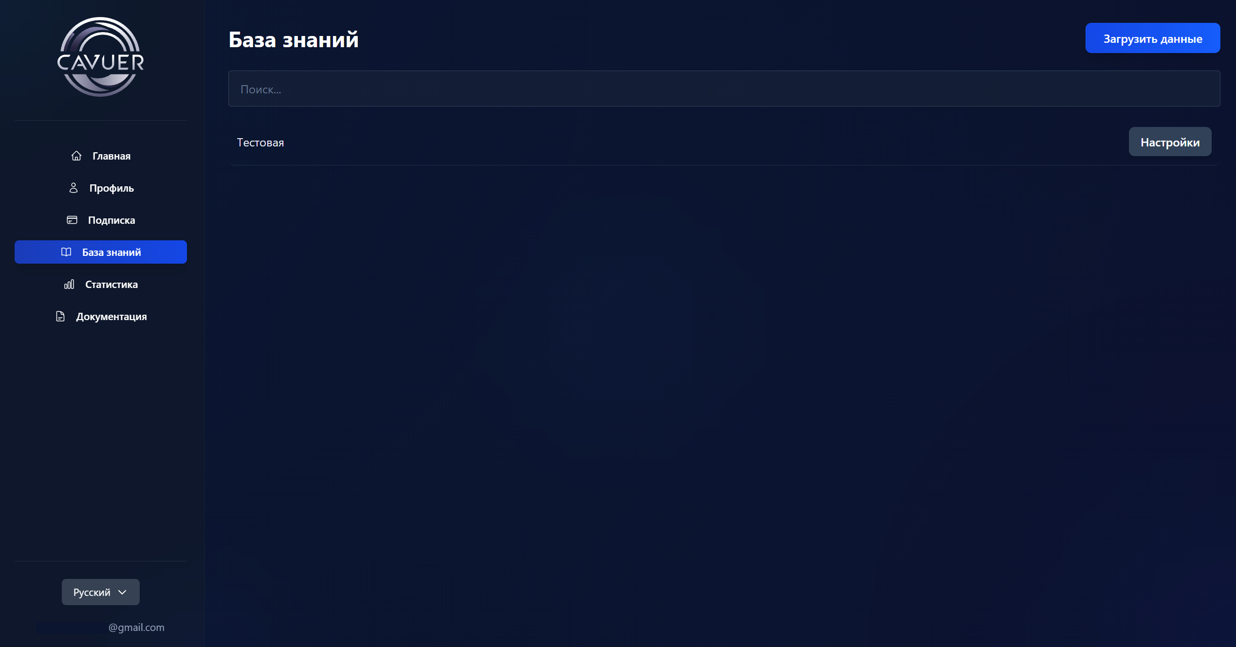 Раздел для загрузки документации, на основе которой агент будет отвечать клиентам.