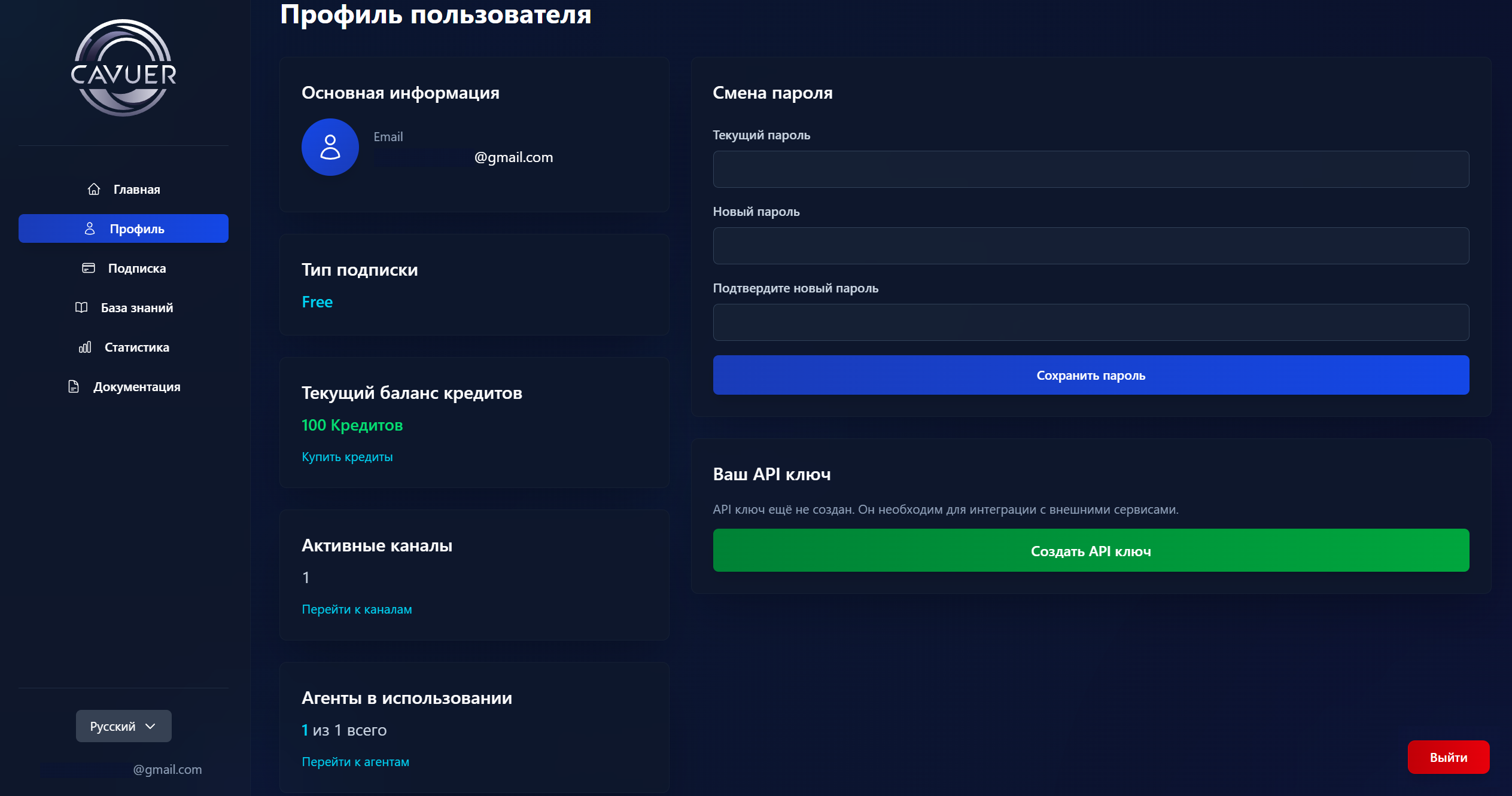 Ваш личный кабинет предоставляет мощные инструменты для управления ИИ-агентами, каналами и настройками платформы.