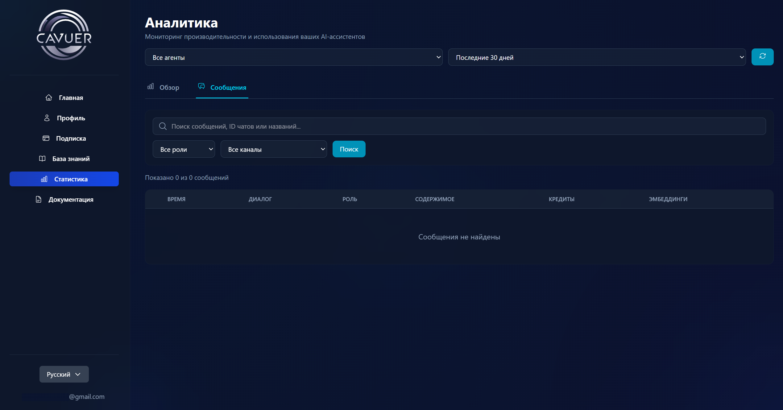 Раздел «Статистика» предназначен для мониторинга производительности и использования ваших ИИ-ассистентов.