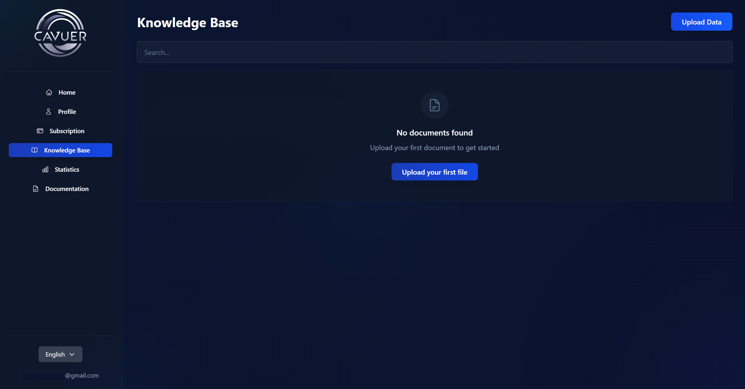 Go to Knowledge Base → click Upload Data → enter the article title and select a file.