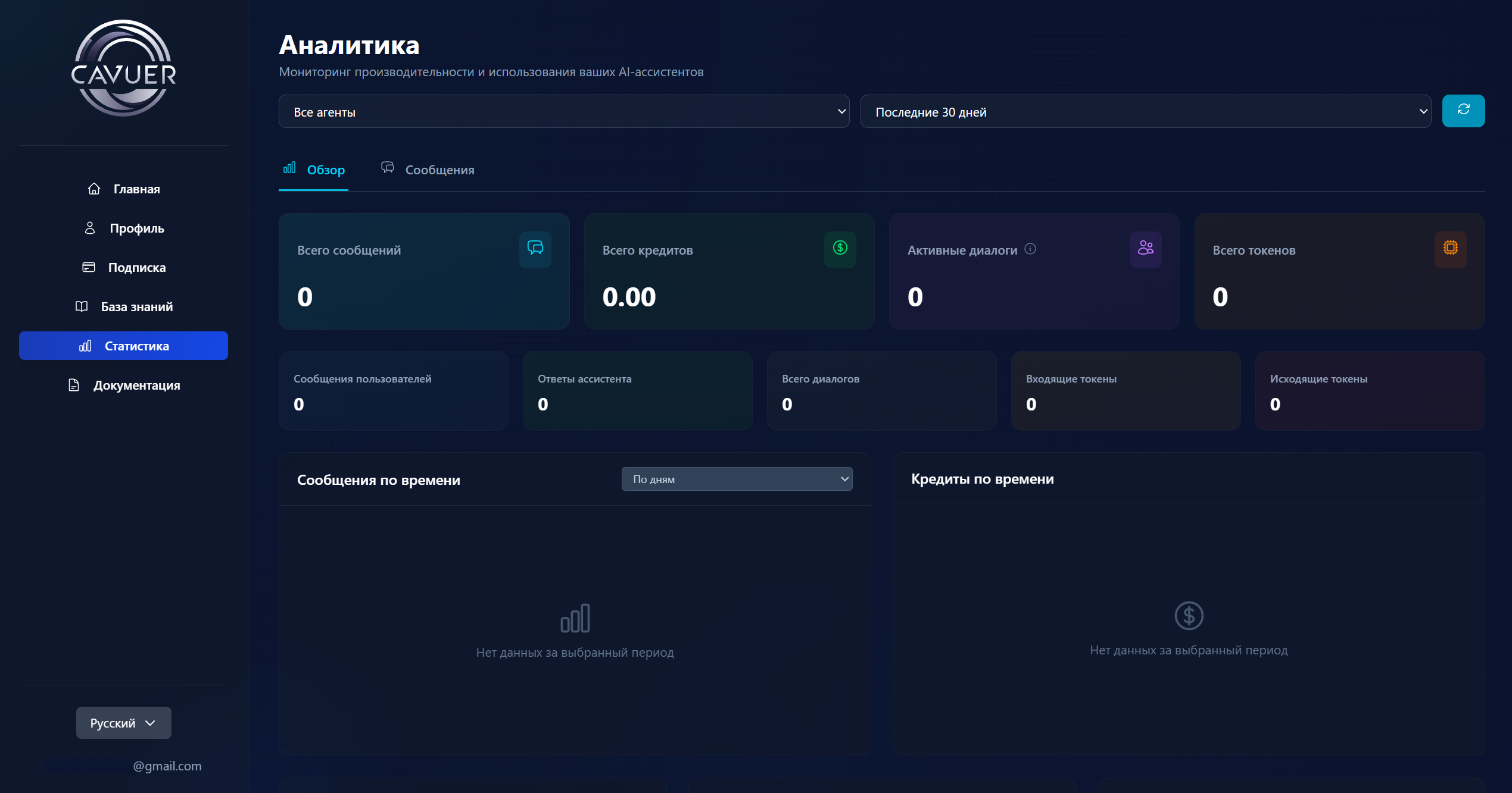 Раздел «Статистика» предназначен для мониторинга производительности и использования ваших ИИ-ассистентов.