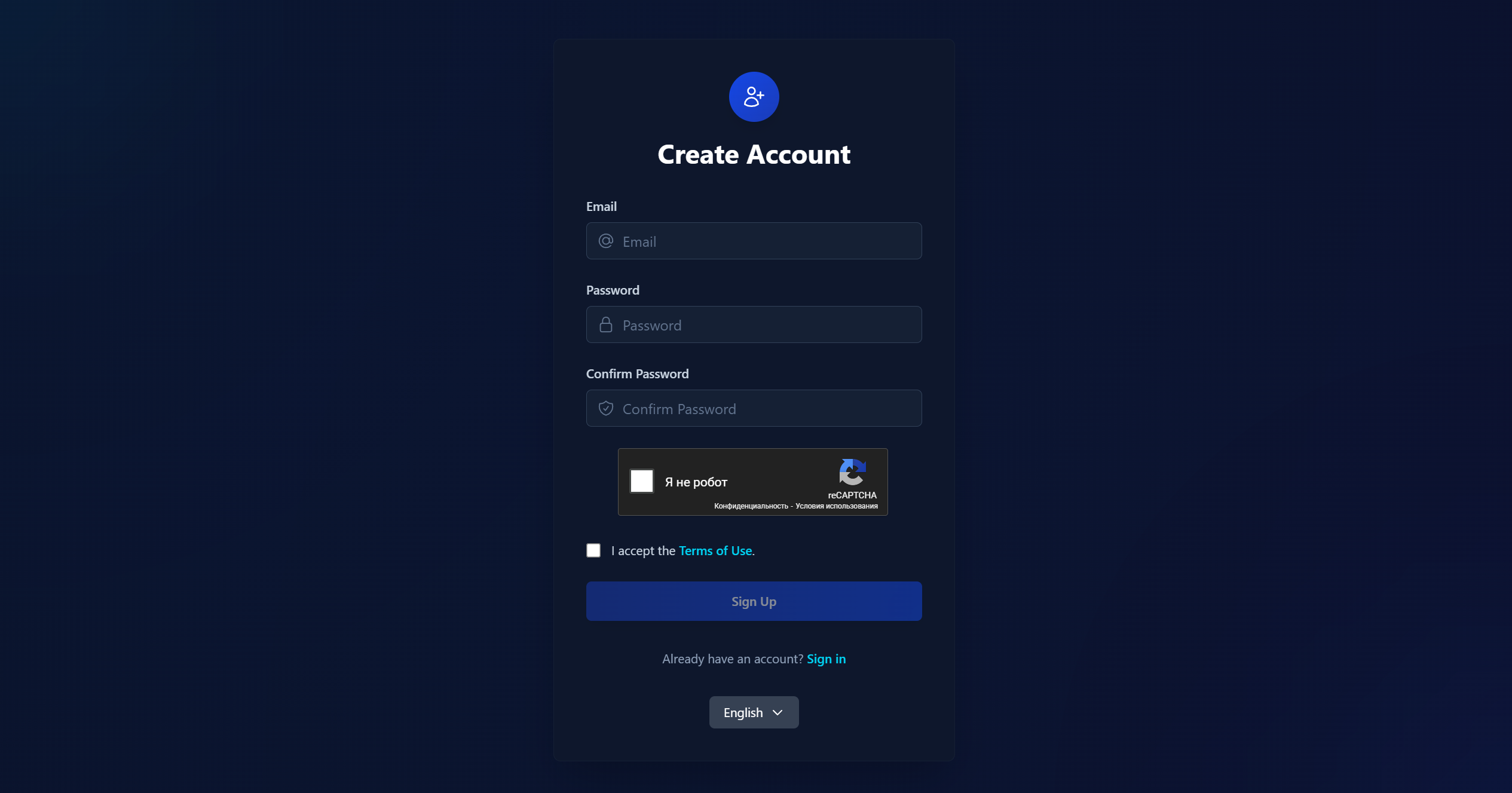 - Fill in all required fields and click "Sign Up"