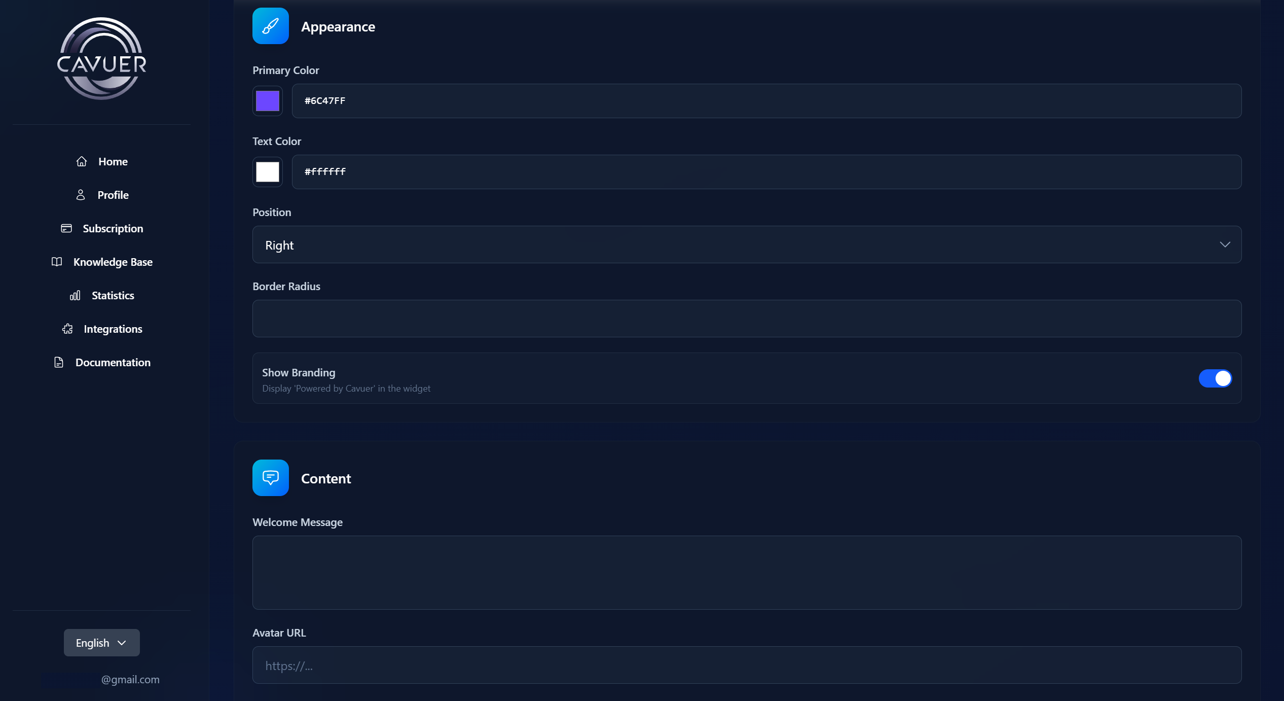 | Name | Rename the agent and channel for easier management in the Cavuer dashboard |